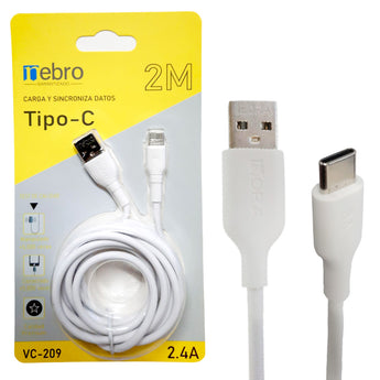CABLE TIPO C 2M 2.4A VC-209 NEBRO PAQ3 1002792P