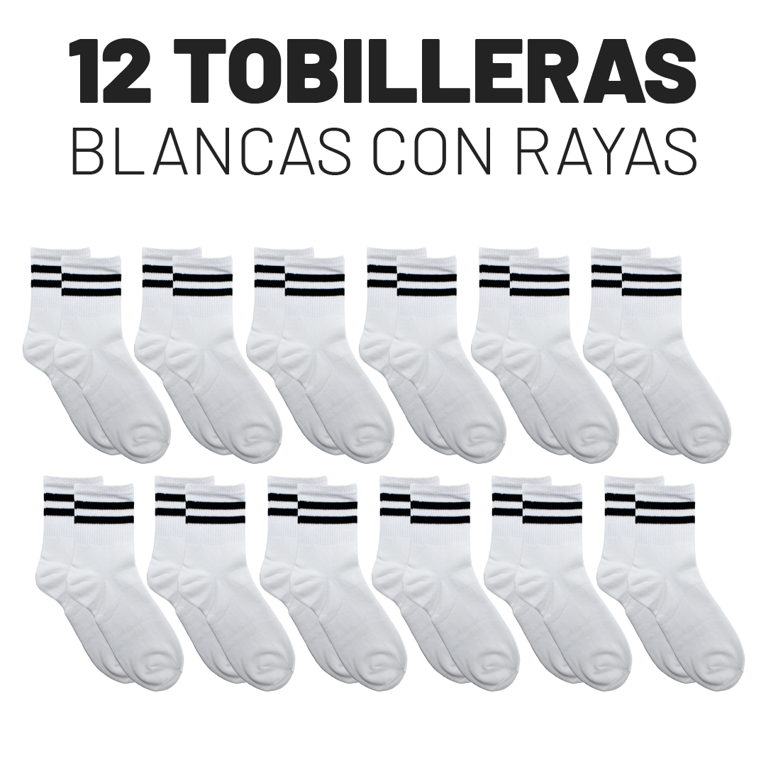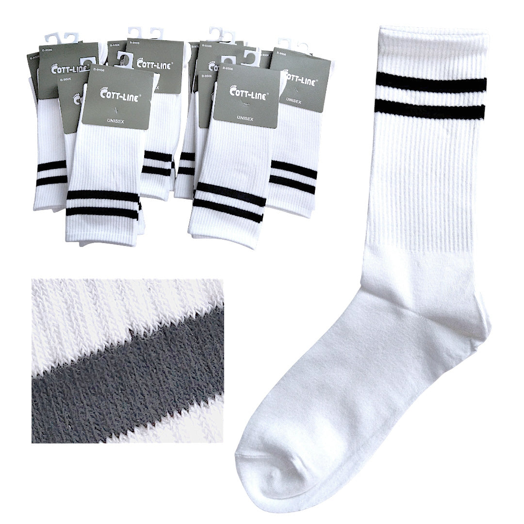 CALCETA BLANCA LARGA CON FRANJAS NEGRAS UNISEX B-9506 COTT LINE PAQ12 6002125P