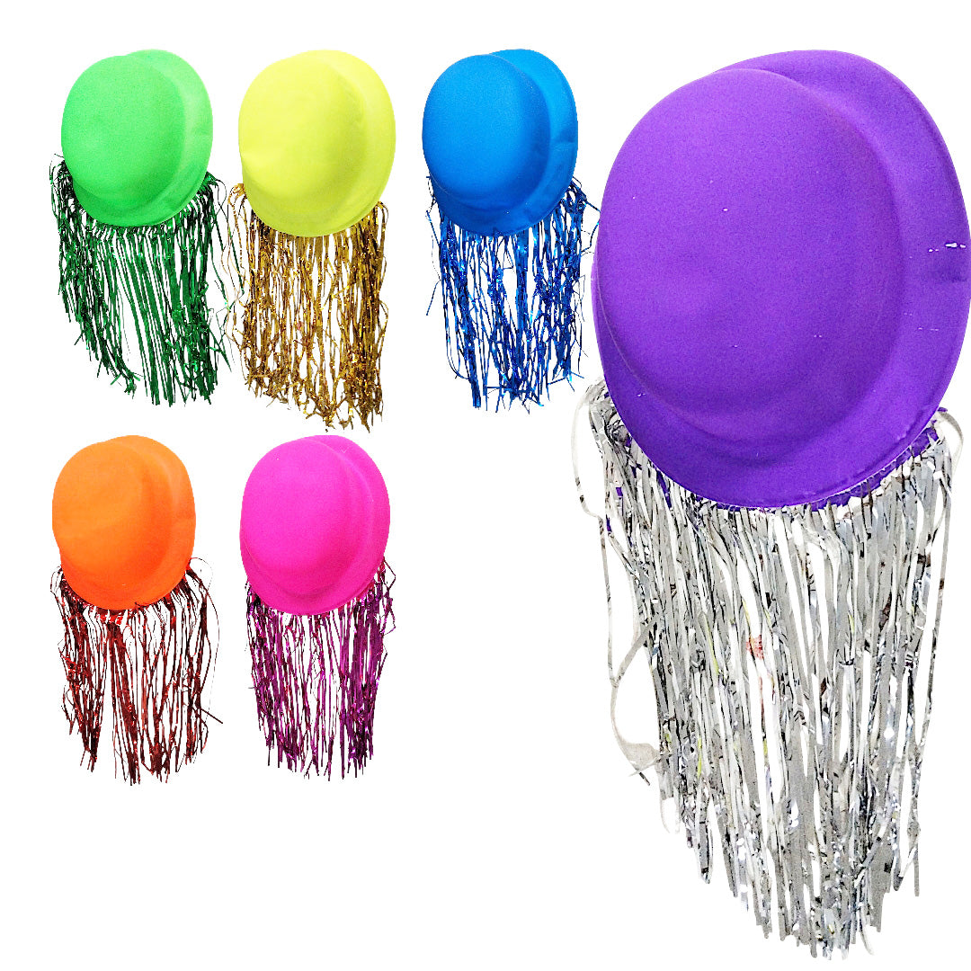 SOMBRERO BOMBIN NEON CON TIRAS METALICAS A-1050 PAQ12 5005422P